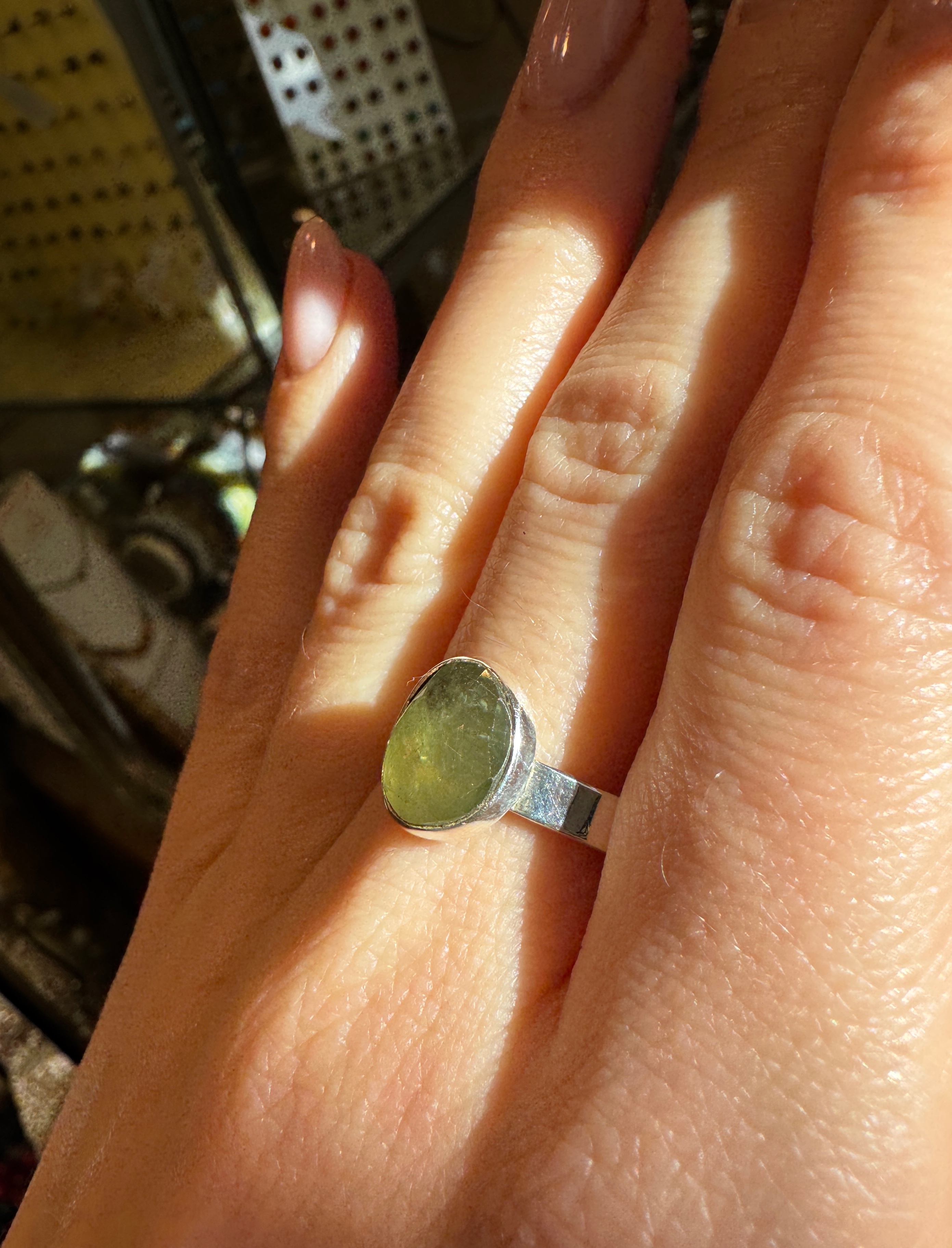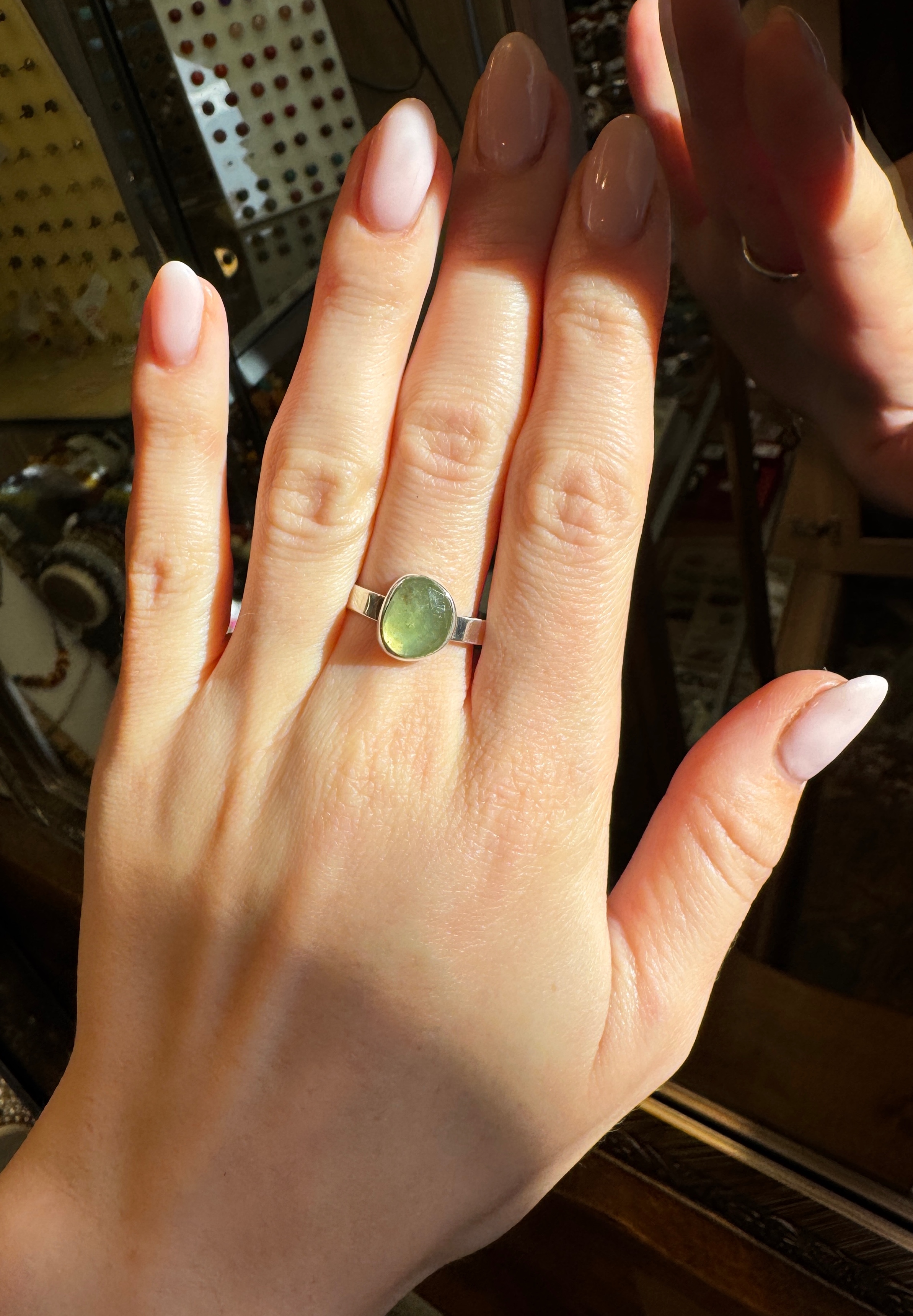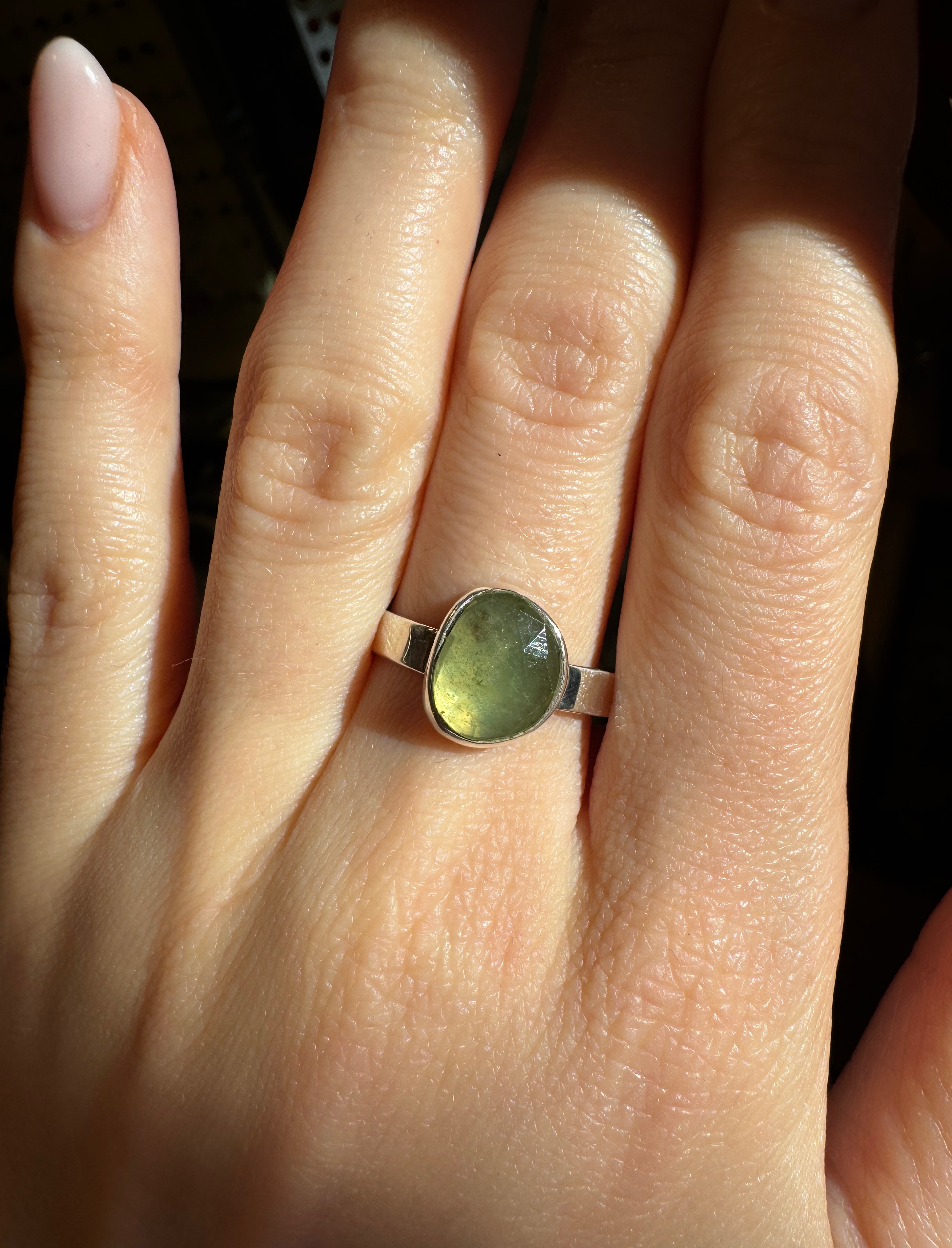 Ręcznie wykonany pierścionek z fasetowanego zielonego ametystu czyli prazjolitu i srebra pr.925
