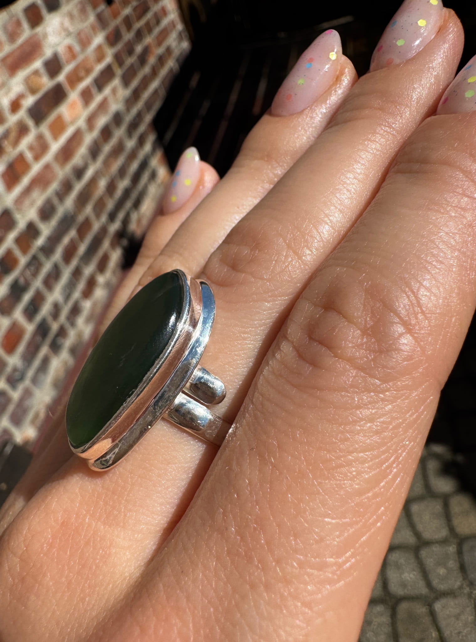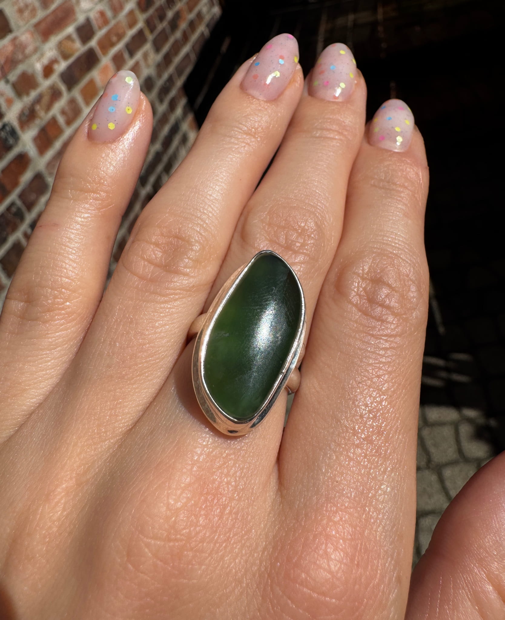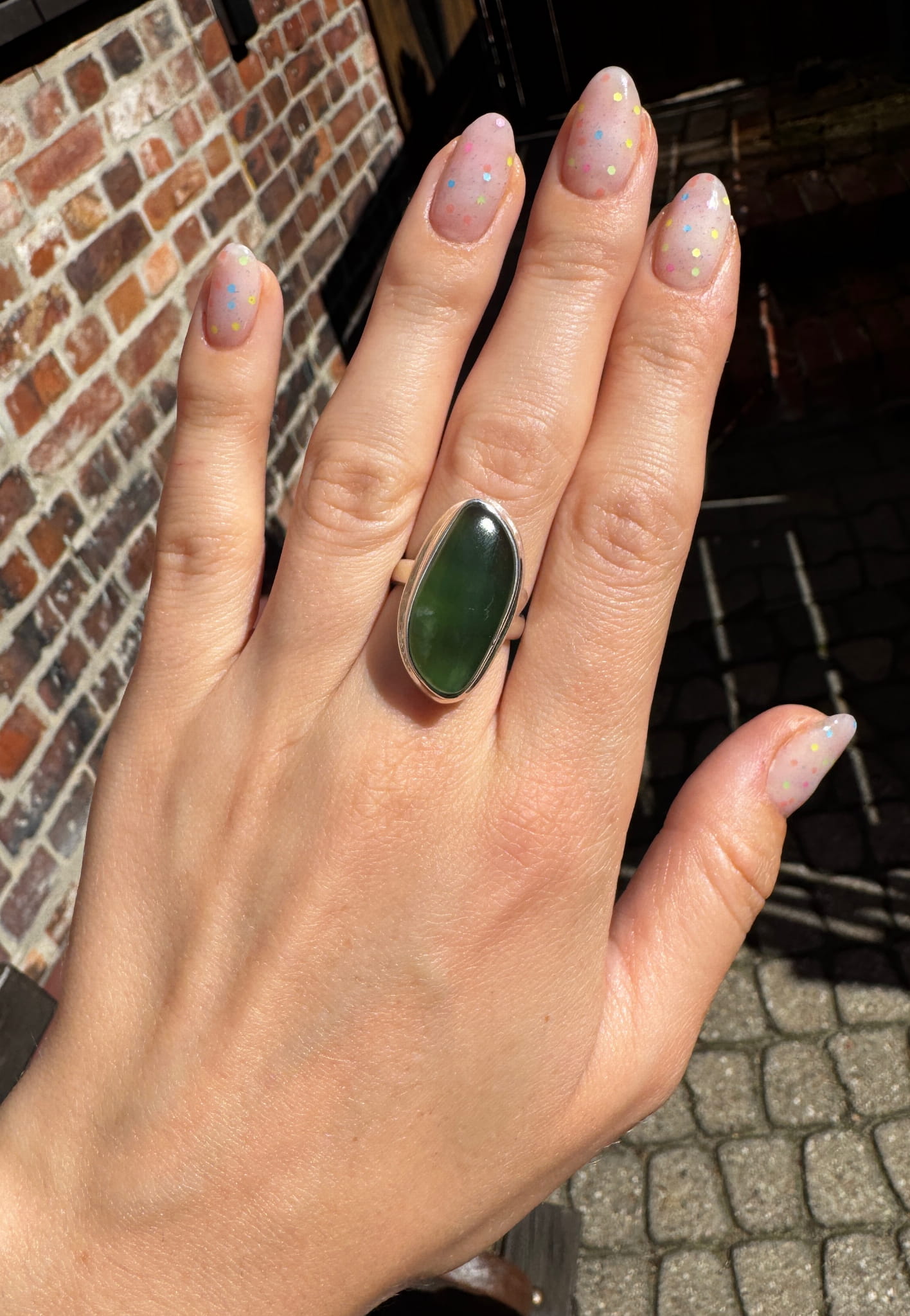 Ręcznie wykonany pierścionek z zielonego nefrytu i srebra pr.925
