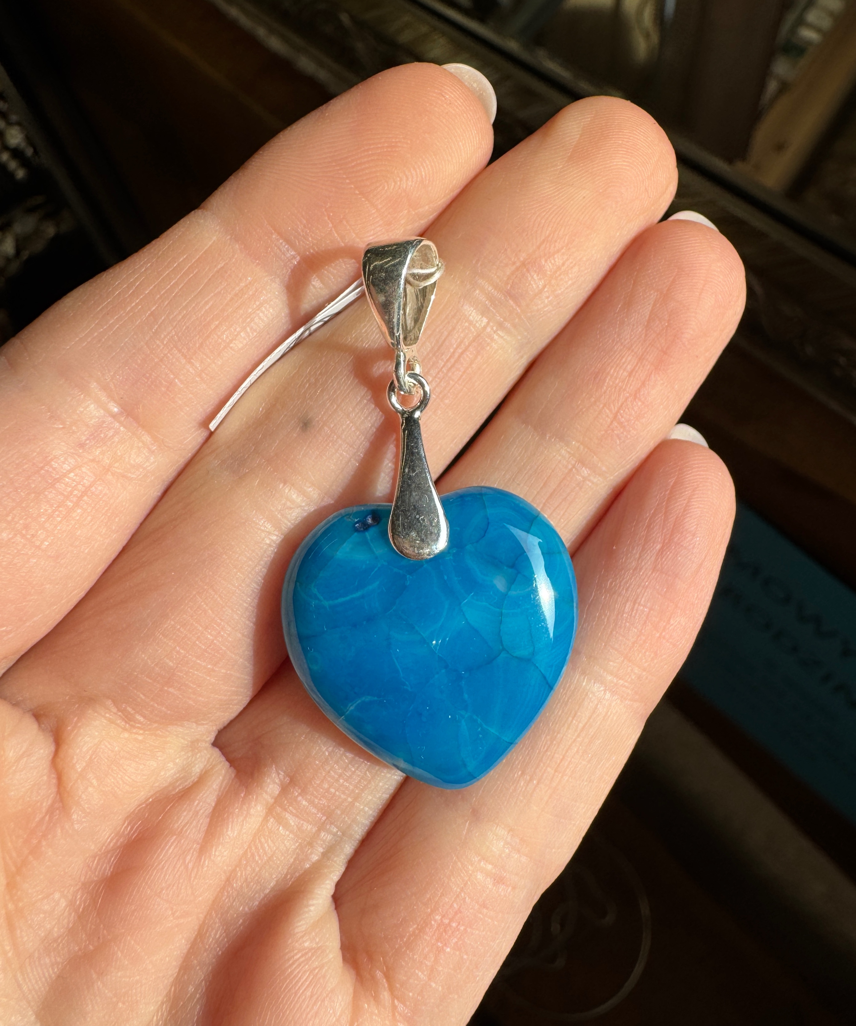 Wisior Agat niebieski serce