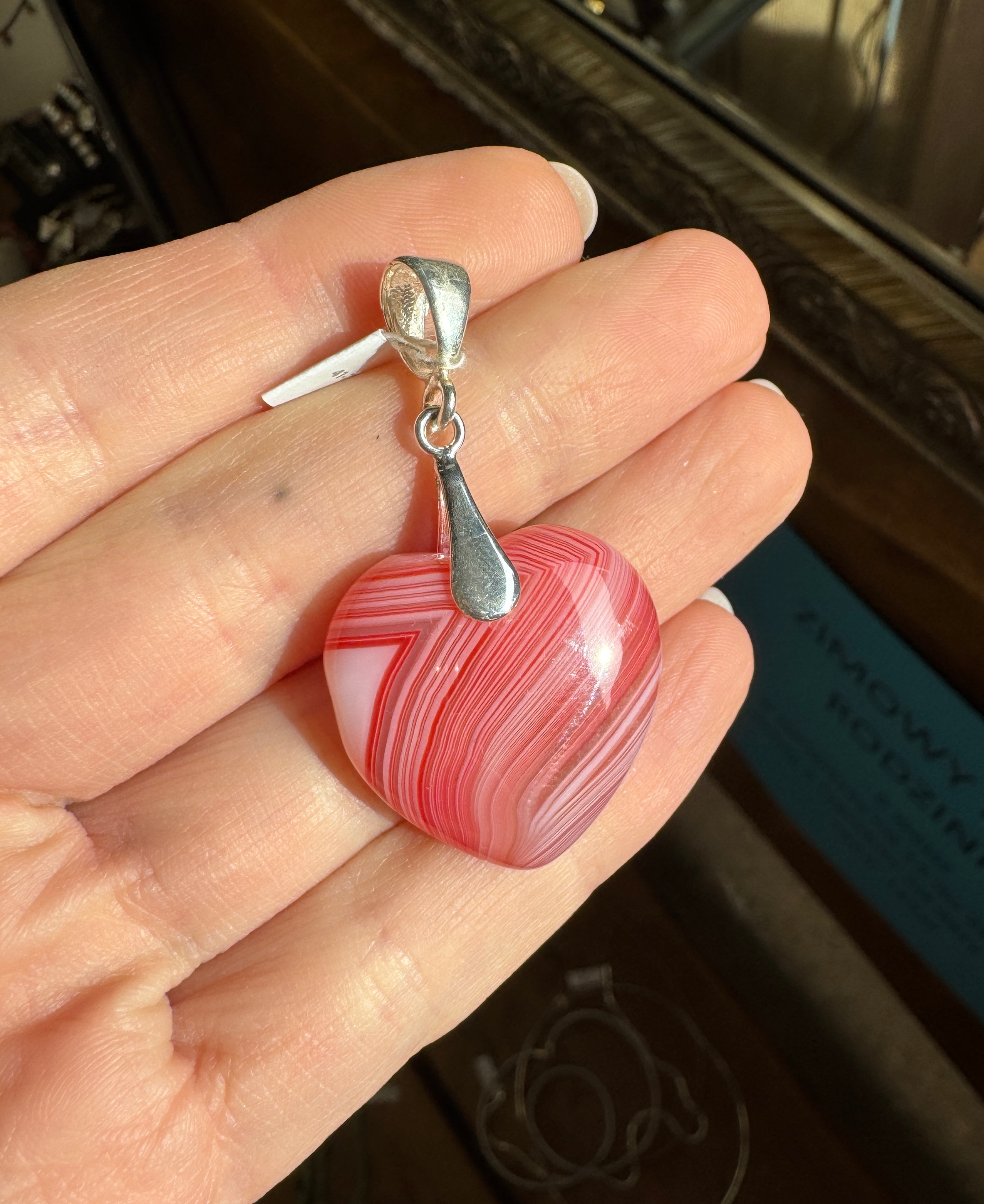Piękny ręcznie robiony wisior z truskawkowego agatu w kształcie serca i srebra pr.925