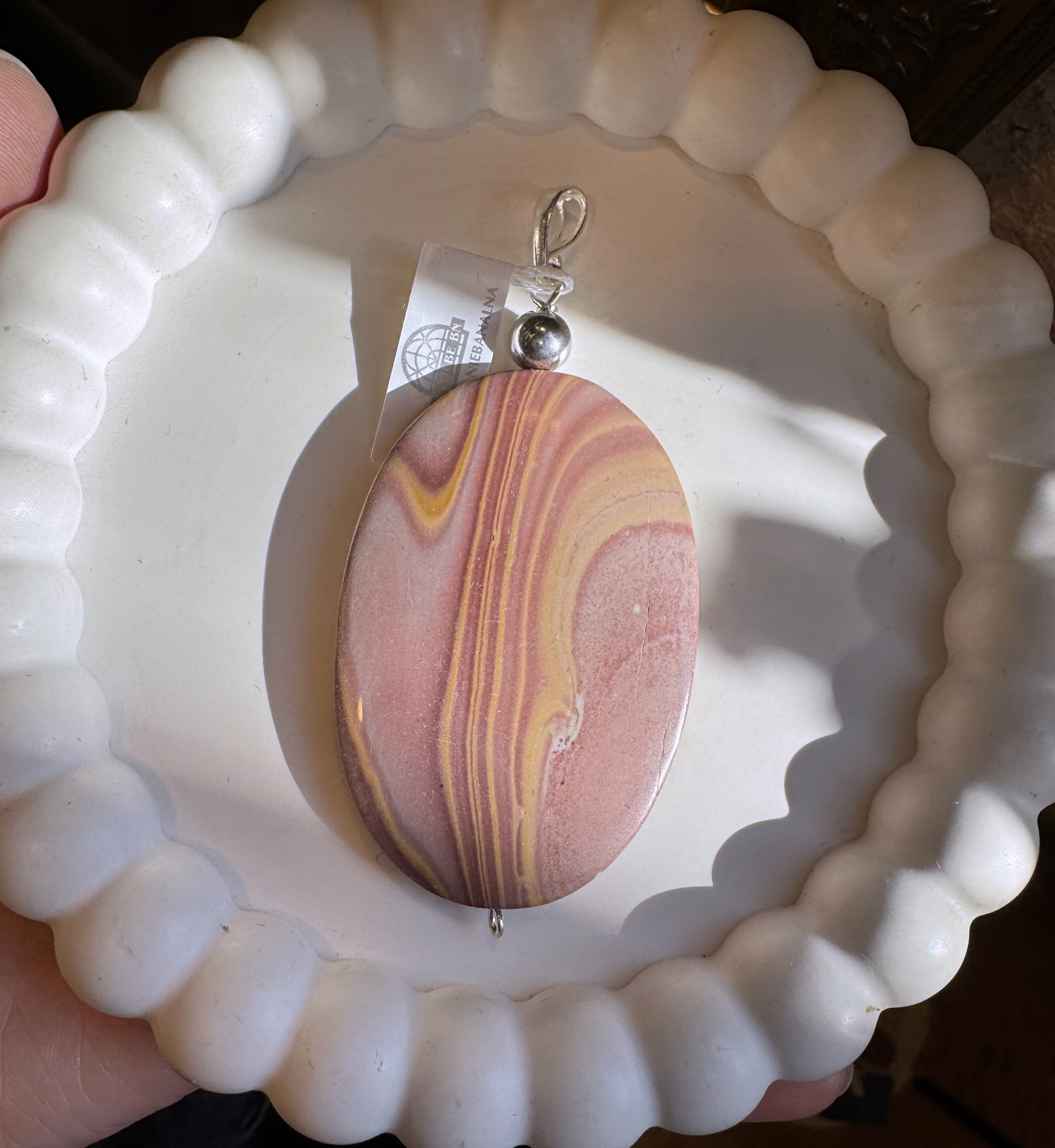 Wisior z jaspisu w odcieniu beżu, jasnego brązu oraz srebra pr. 925.