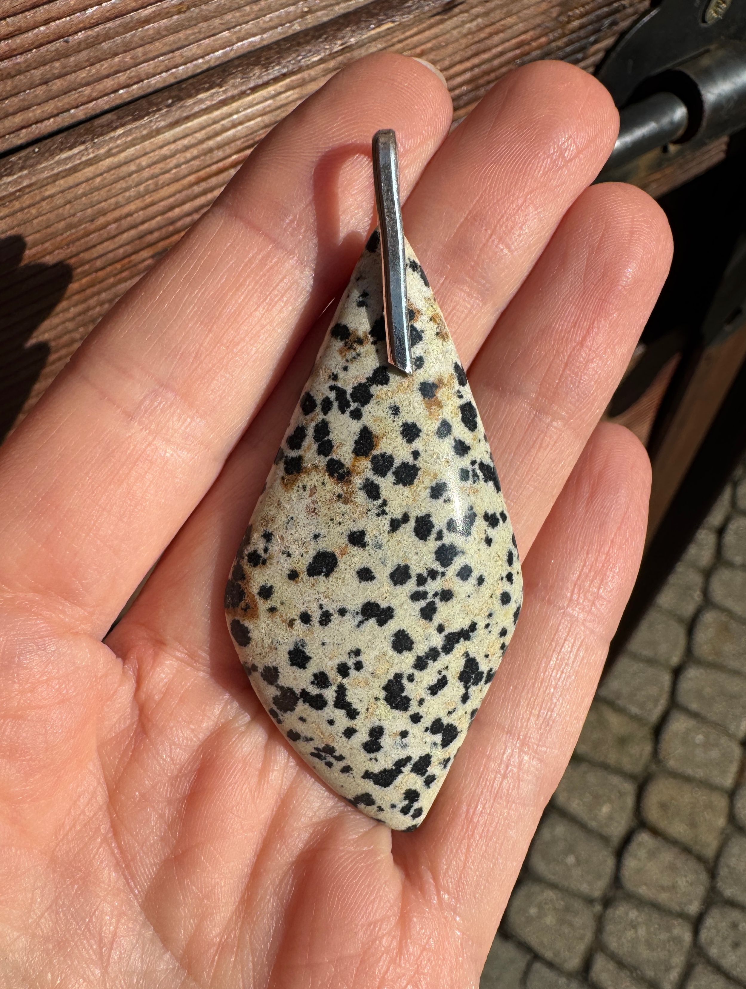Wisior z jaspisu dalmatyńskiego i srebra pr. 925.