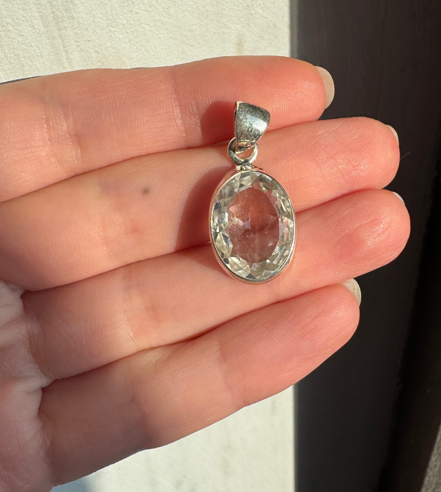 Piękny Wisior z kryształu górskiego w kształcie owalnym i srebra pr. 925.