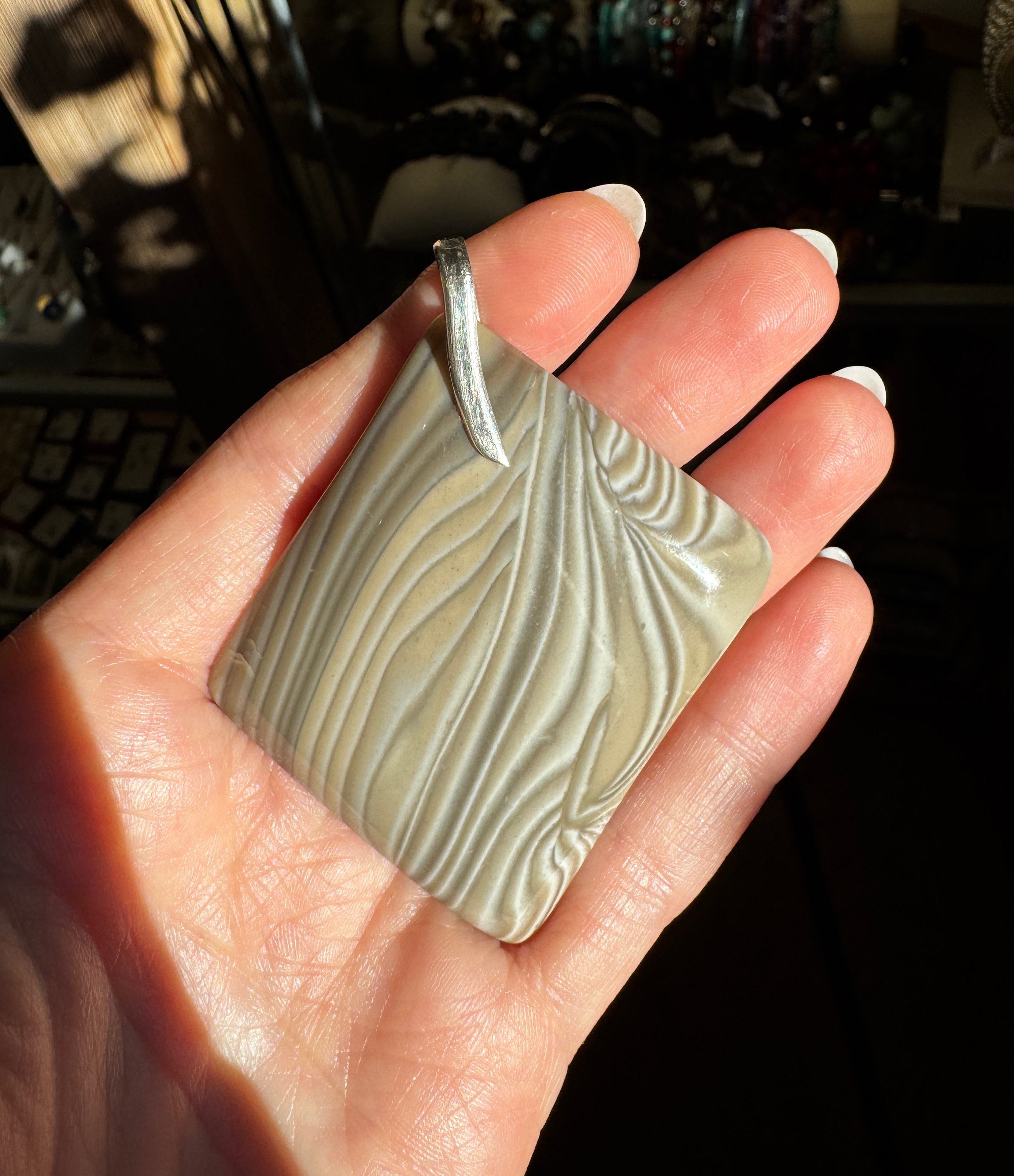 Wisior z krzemienia pasiastego i srebra pr. 925.