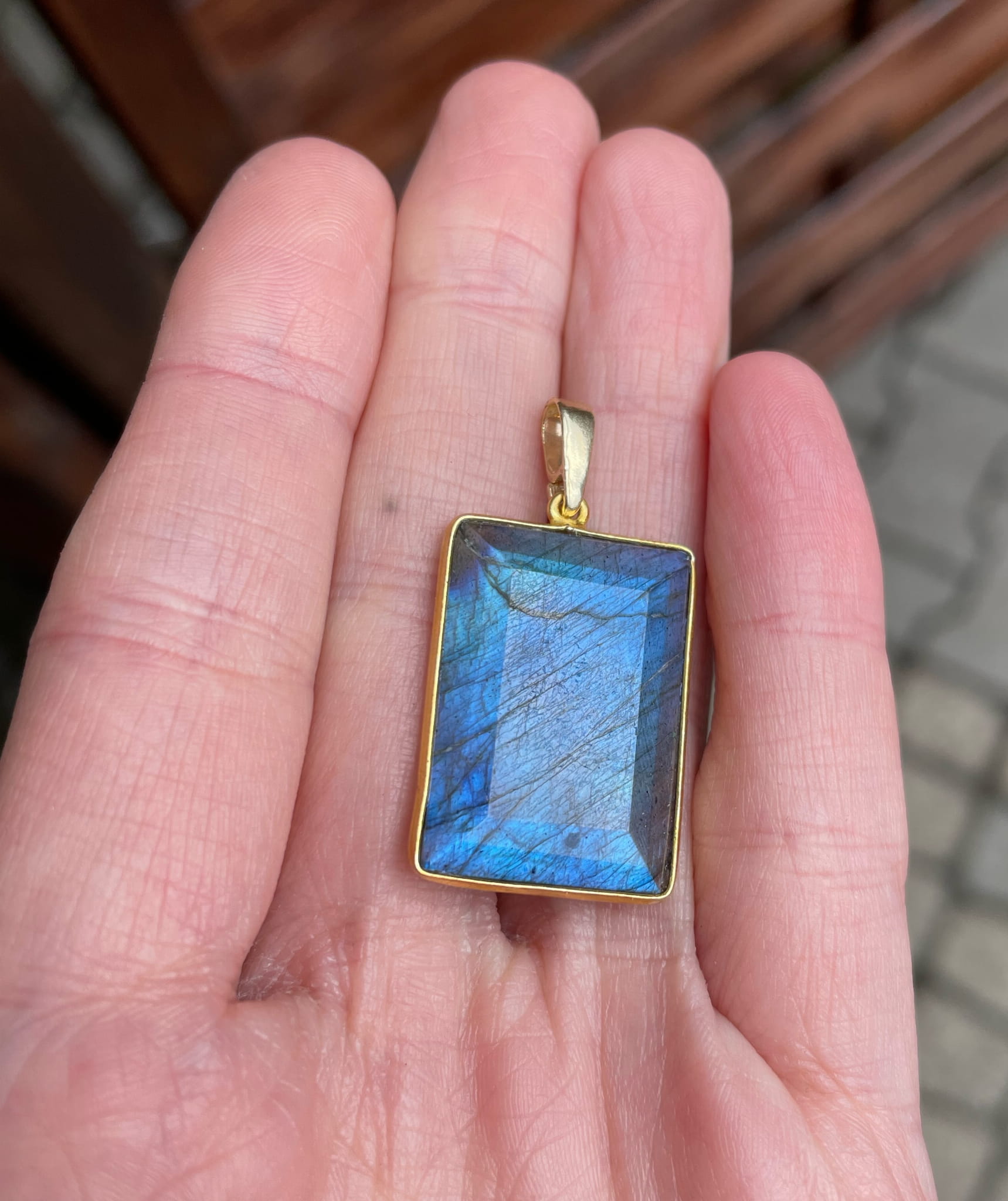 Piękny Wisior z labradorytu i srebra pr. 925.