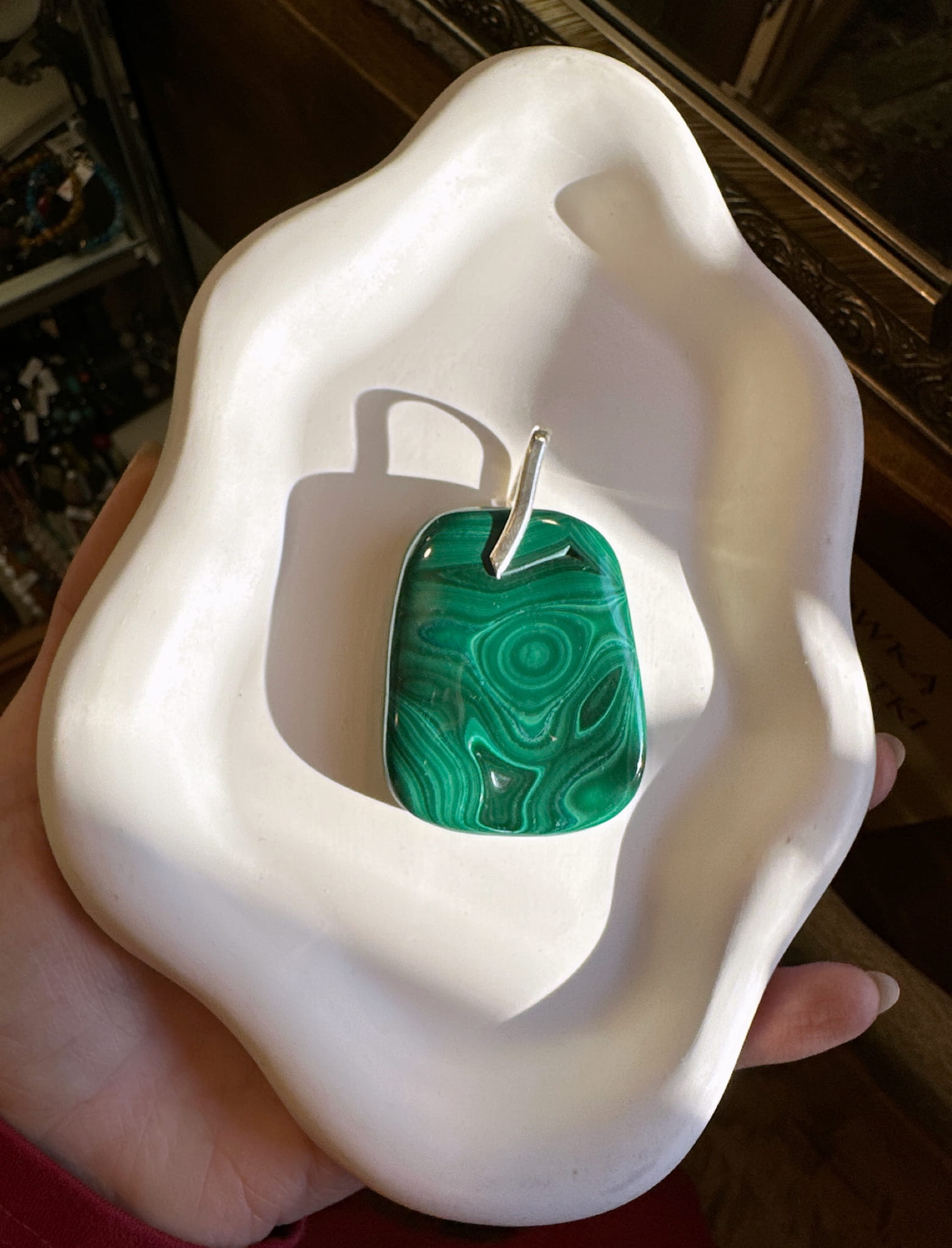 Wisior z malachitu i srebra pr. 925.