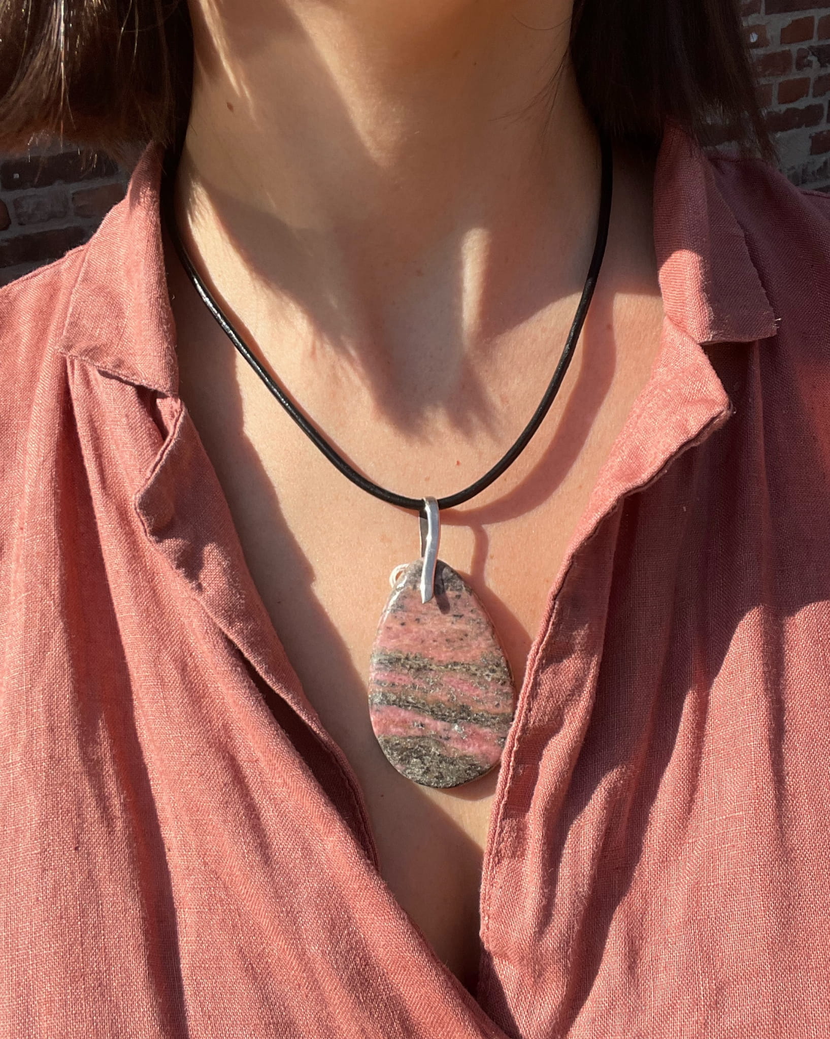 Wisior z rodonitu, odmiany jaspisu i srebra pr. 925.