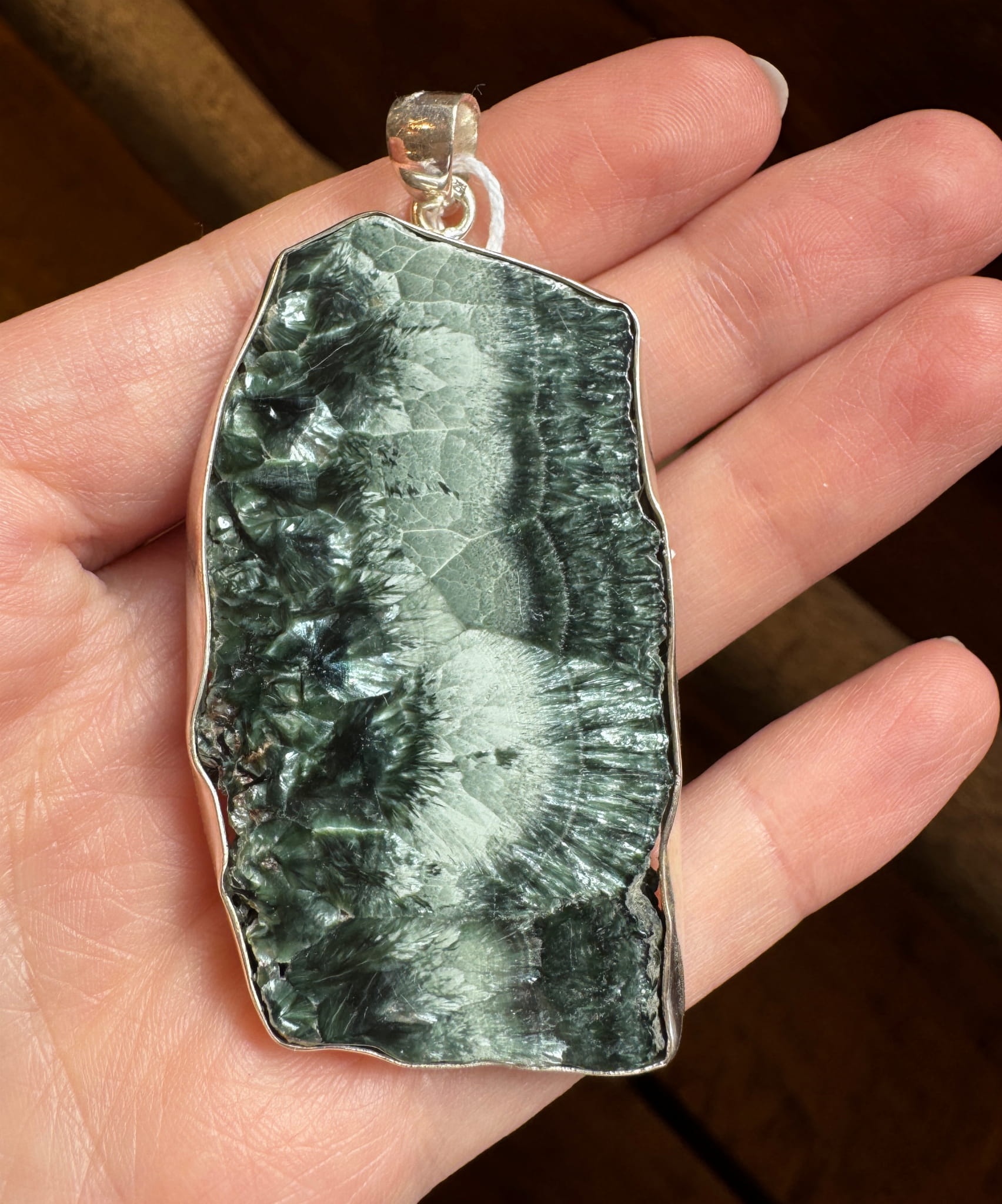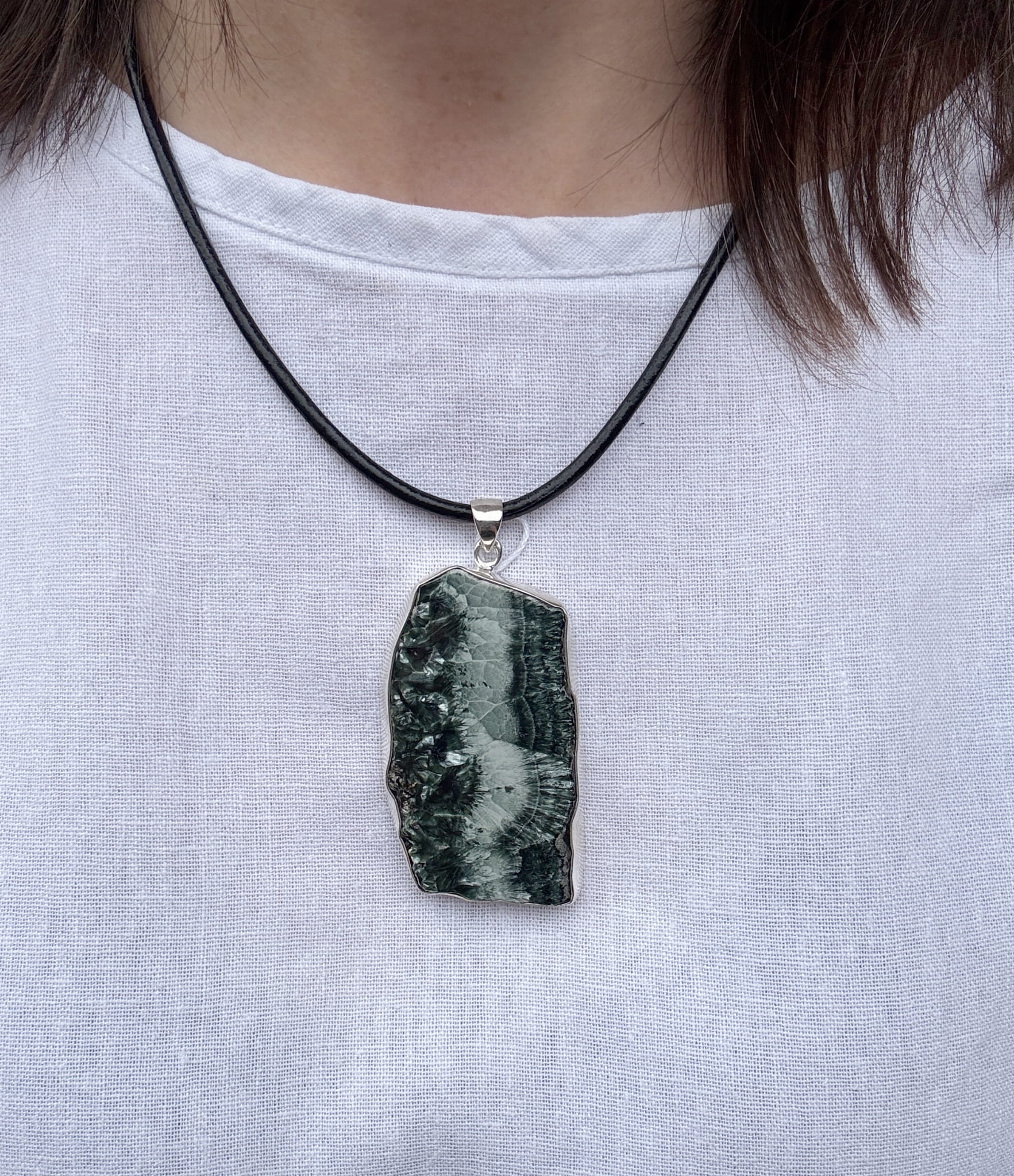 Wisior z serafinitu w zieleni i srebra pr. 925.
