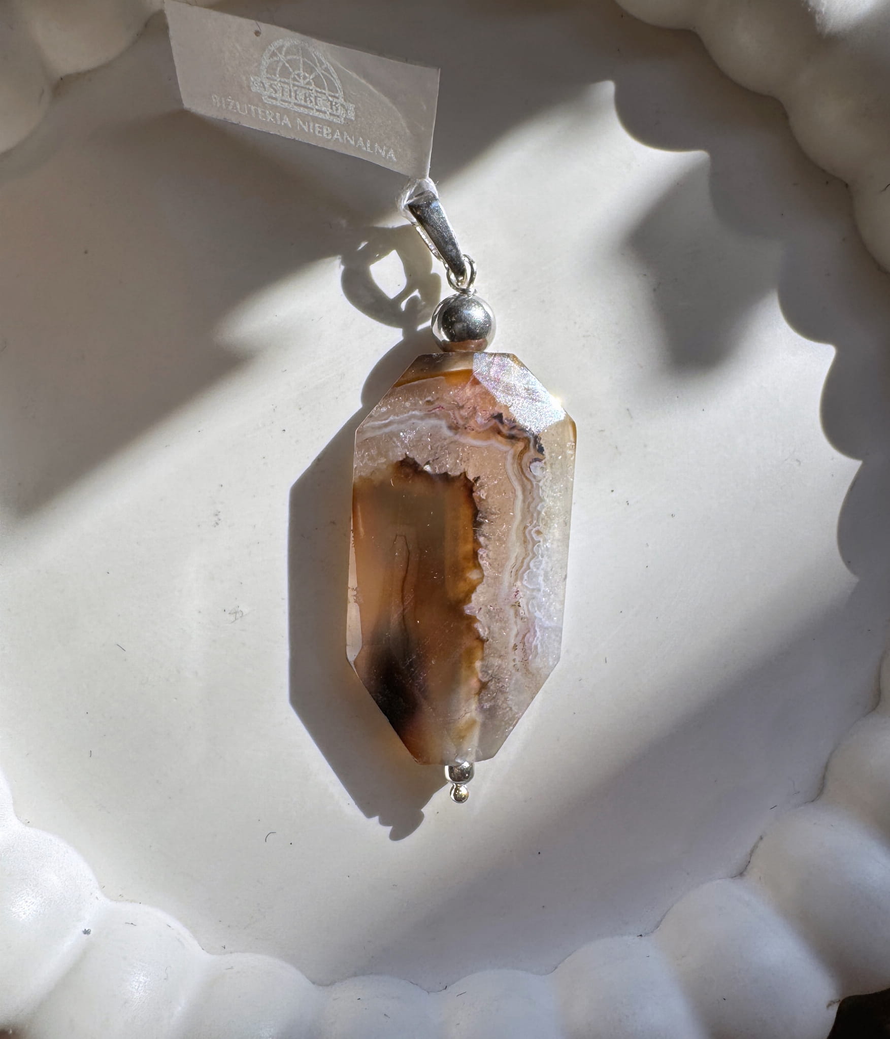 Wisior z agatu o niepowtarzalnym rysunku i srebra pr. 925.