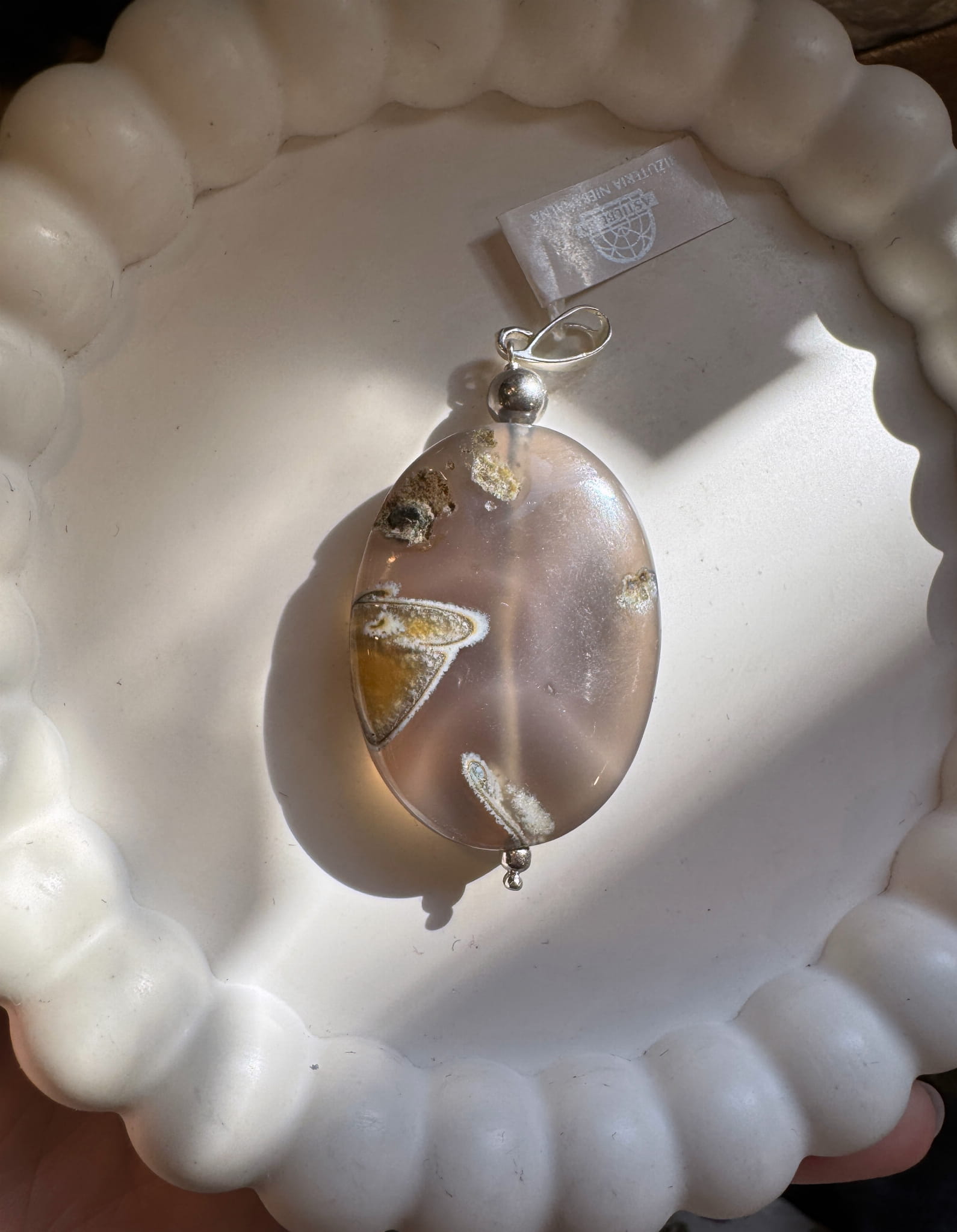 Wisior z agatu pięknego i niepowtarzalnego i srebra pr. 925.