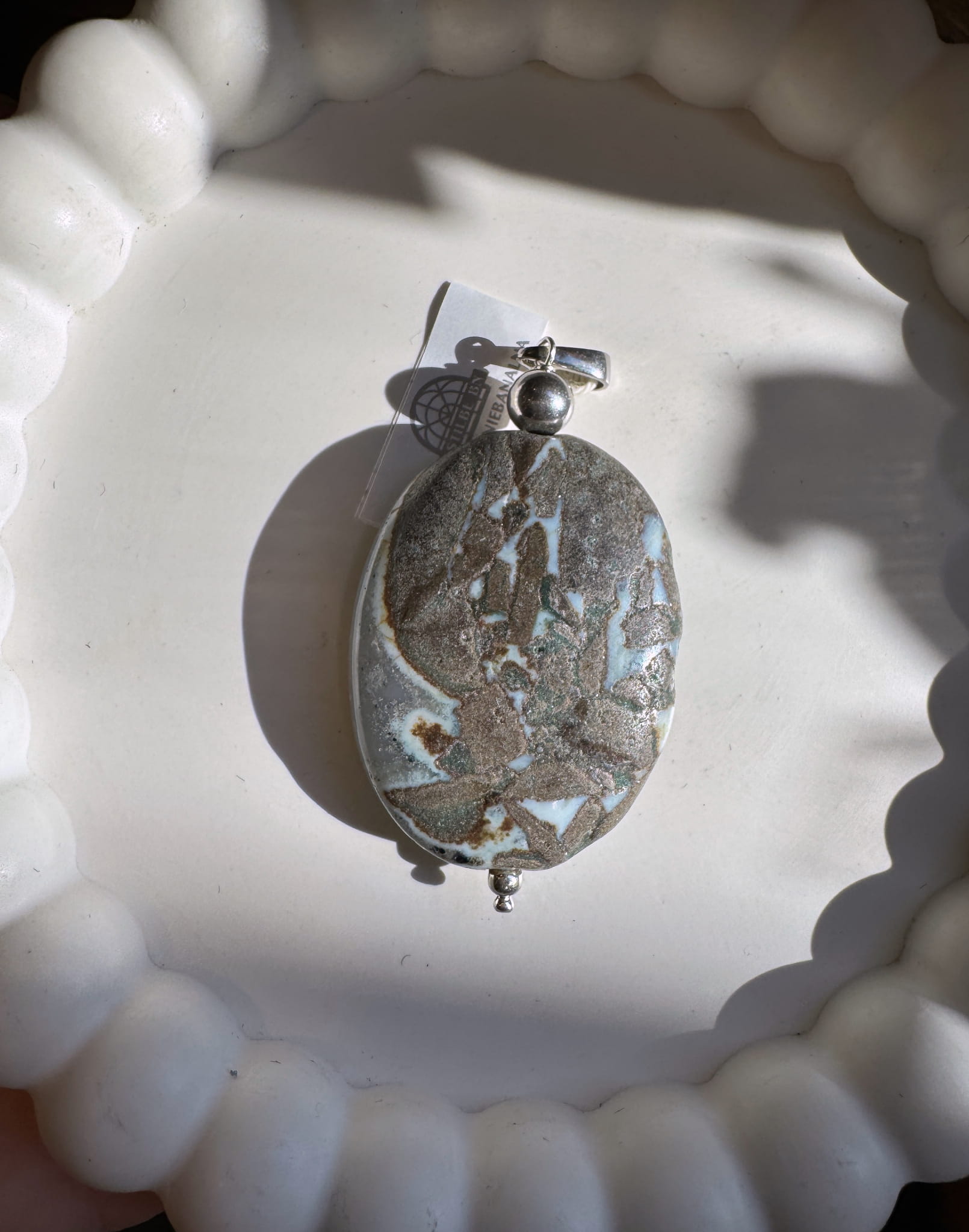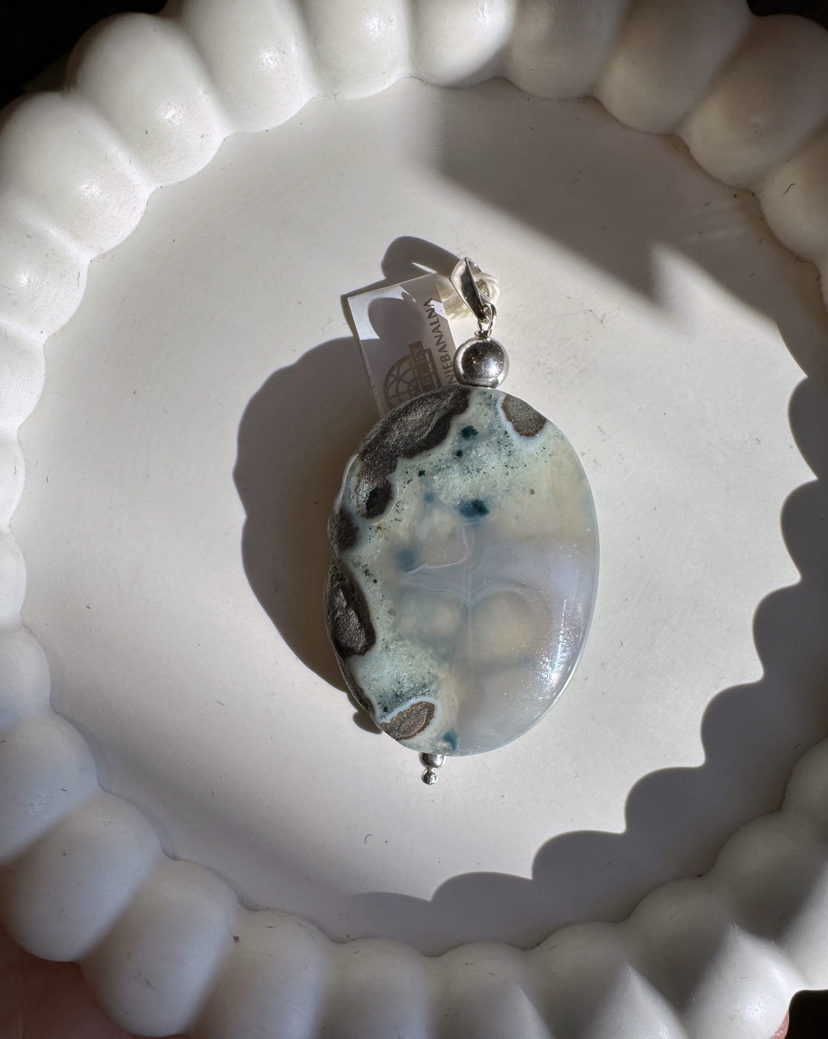 Wisior agat szary owal