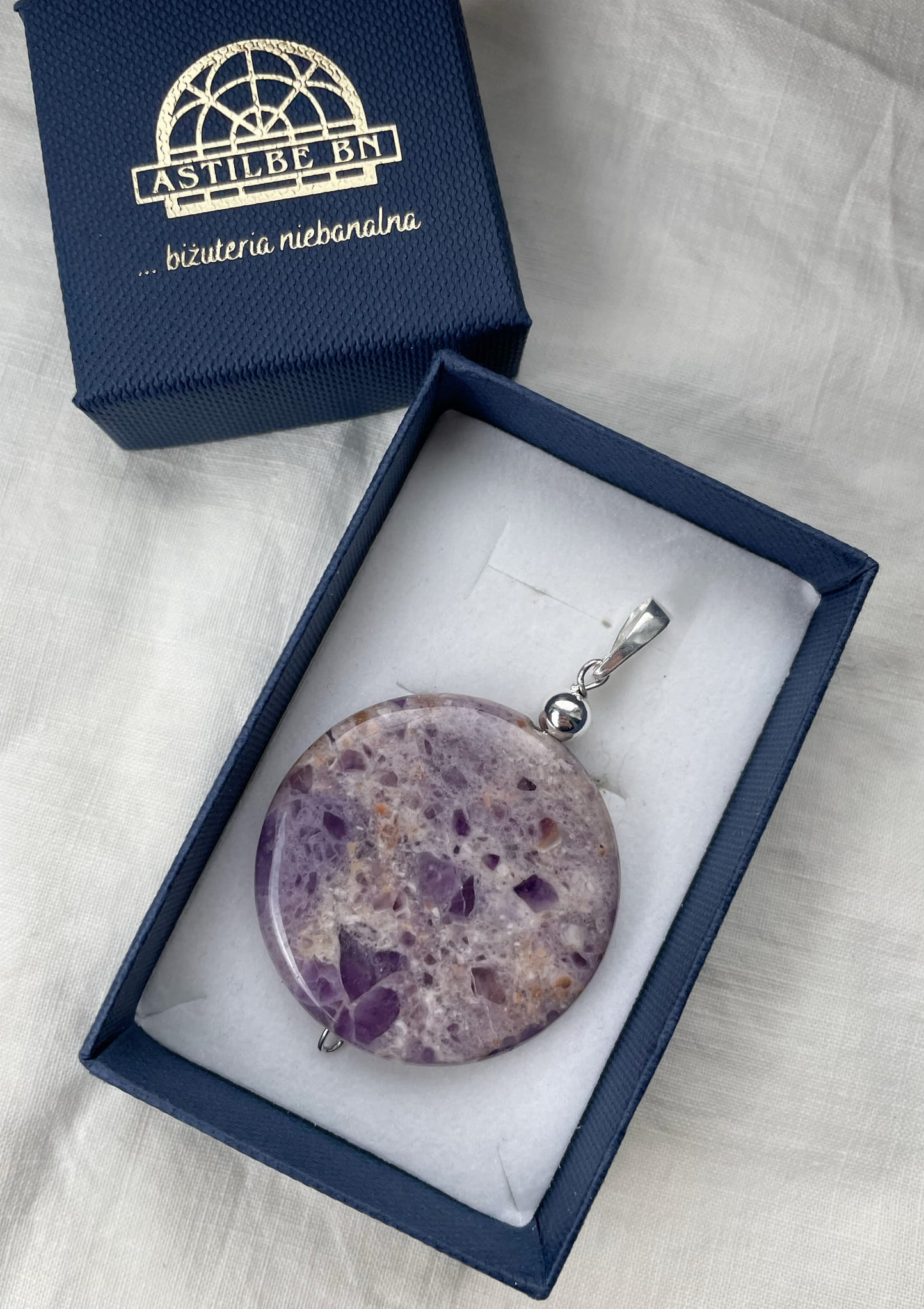 Wisior z fioletowego ametystu i srebra pr. 925.