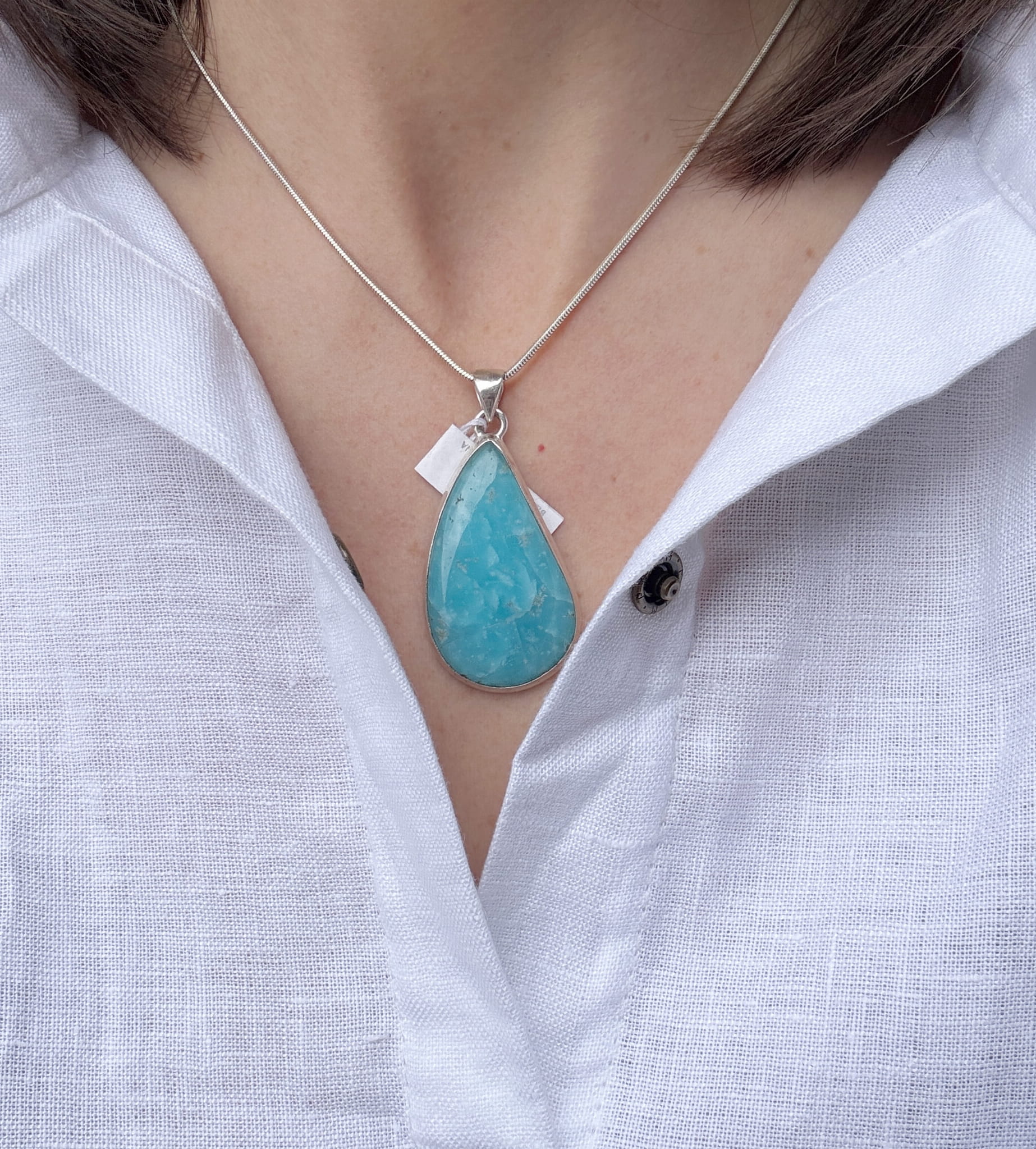 Wisior z pięknego błękitnego hemimorfitu i srebra pr. 925.