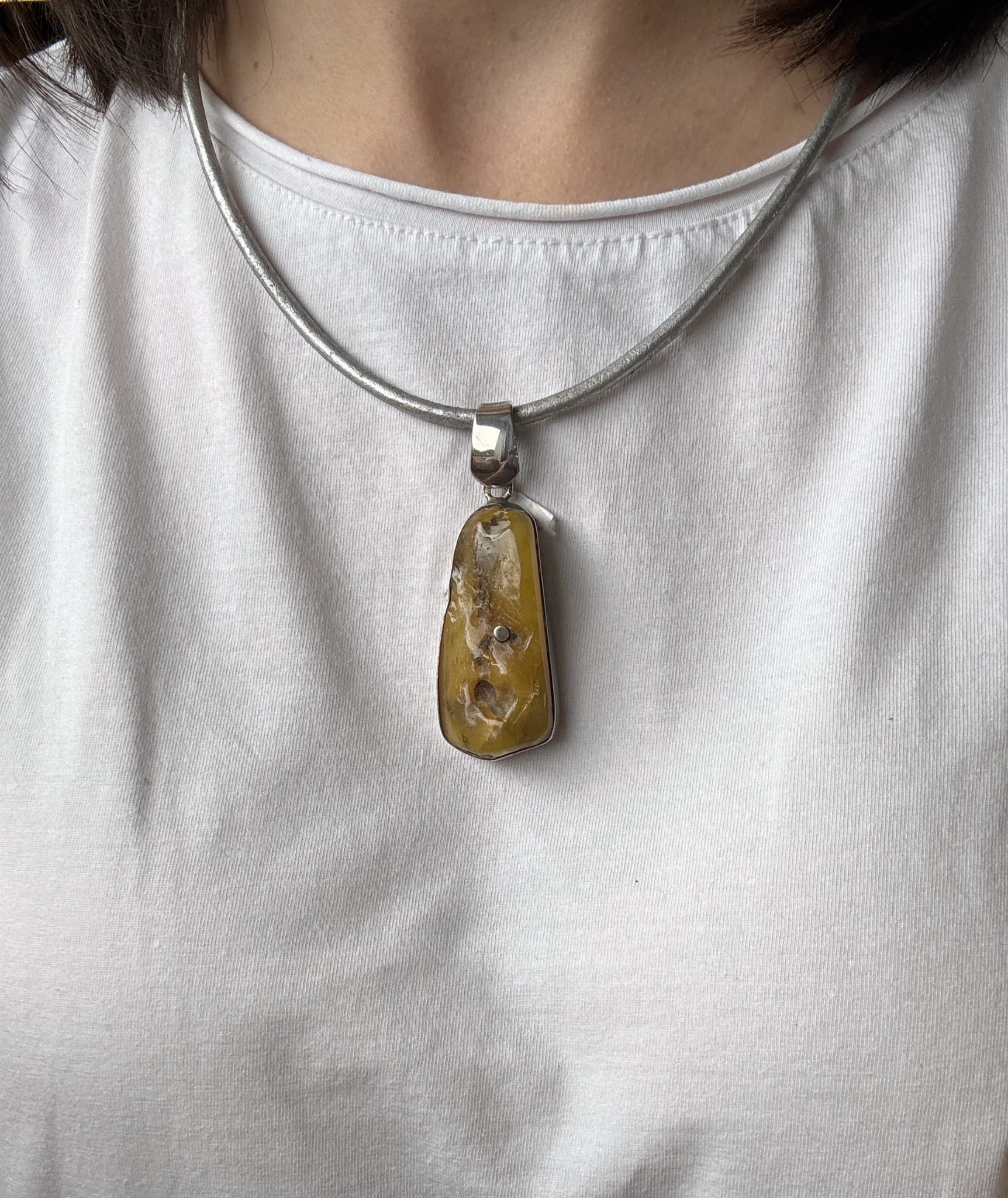 Piękny i niepowtarzalny ręcznie robiony wisior z naturalnego bursztynu i srebra pr.925