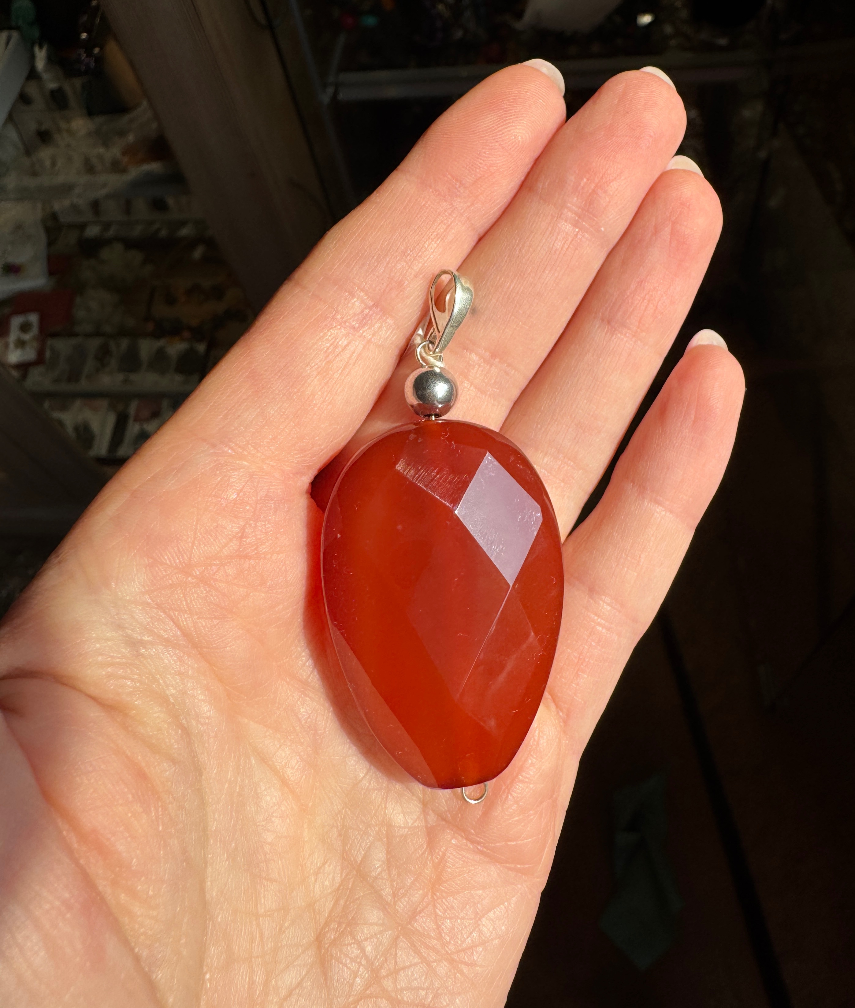 Wisior z fasetowanego karneolu i srebra pr. 925.