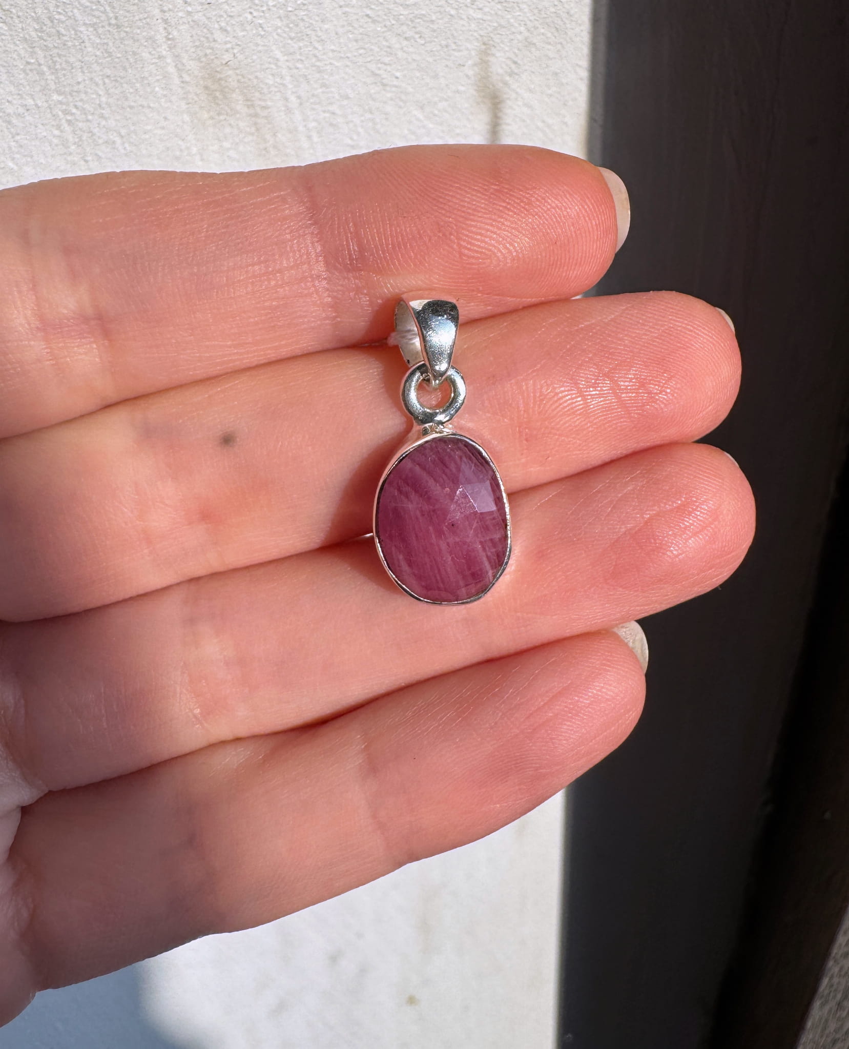Piękny Wisior z fasetowanego rubinu i srebra pr. 925.