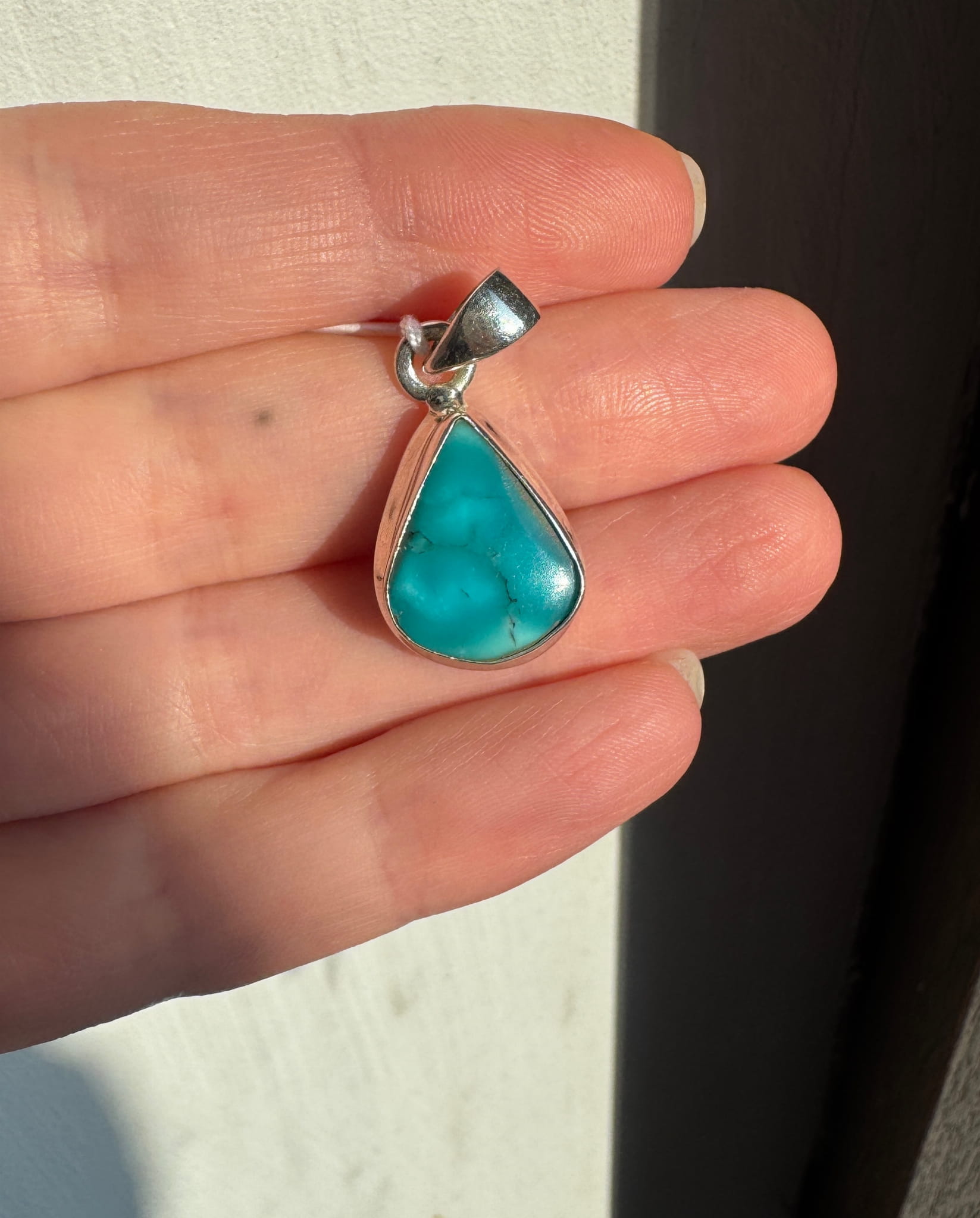 Wisior z niebieskiego, pięknego turkusu oraz srebra pr. 925.